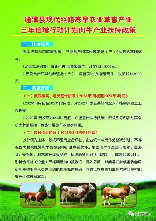 2023年通渭县现代丝路寒旱农业草畜产业三年倍增行动计划肉牛产业扶持政策
