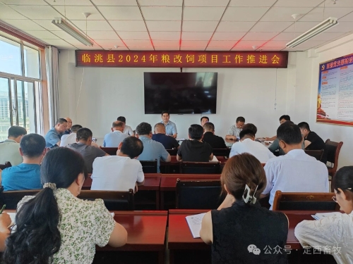 为高质量推进我县2024年粮改饲工作,8月14日,临洮县畜牧兽医局召开2024年粮改饲项目推进会,县畜牧兽医局主要领导、分管领导、相关站室业务人员、各乡镇畜牧兽医站站长及饲草收贮主体参加了会议。