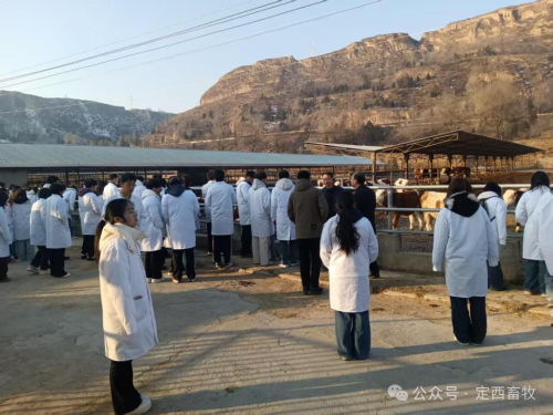 随后,师生一行前往临洮县洮润牧业有限责任公司,通过实地察看牛舍环境管控、日常饲喂管理以及疫病基础防控等关键环节,并结合技术人员的实操讲解,同学们对规模化肉牛养殖的常见问题与应对技巧有了直观认知。