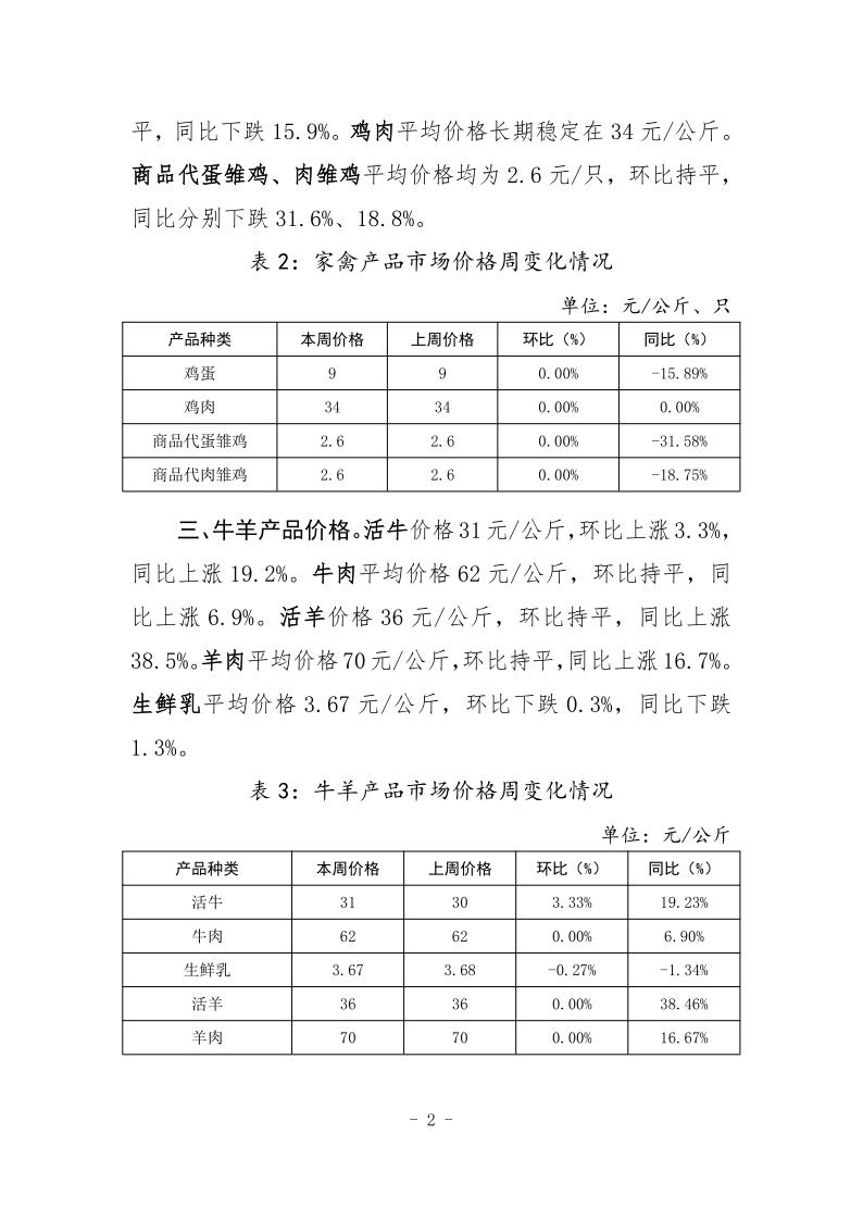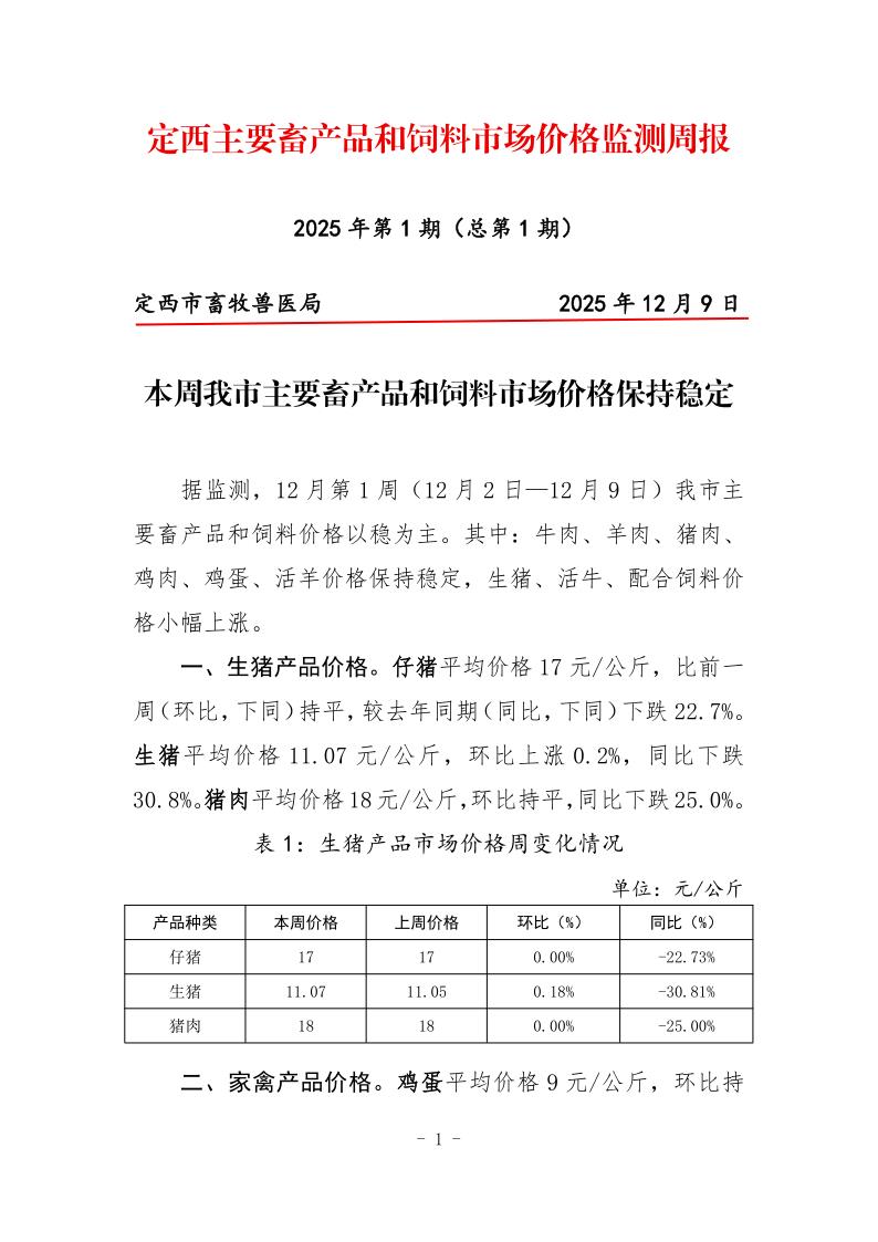 12月第1周定西主要畜产品和饲料市场价格监测周报