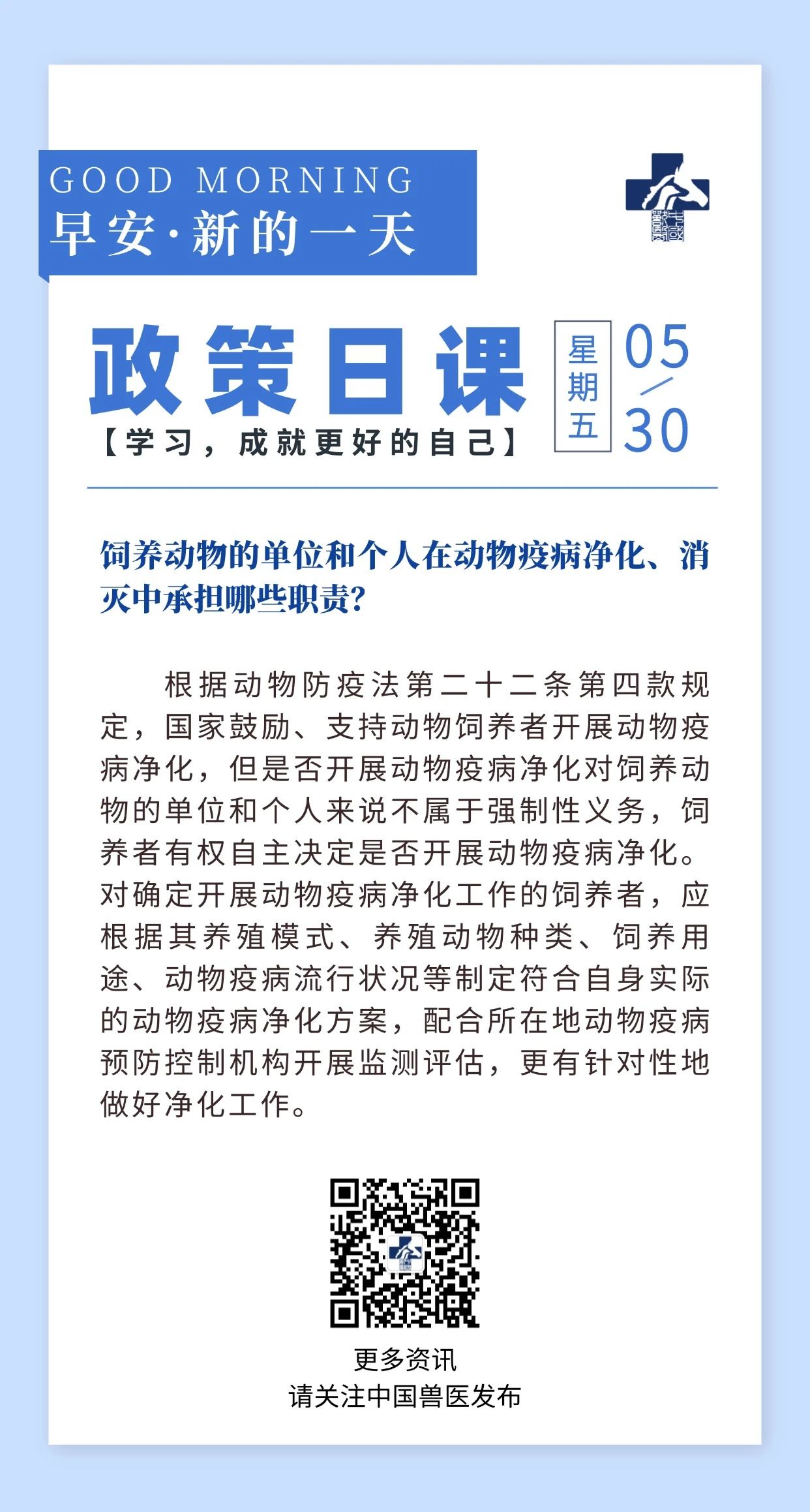政策日课 | 饲养动物的单位和个人在动物疫病净化、消灭中承担哪些职责?