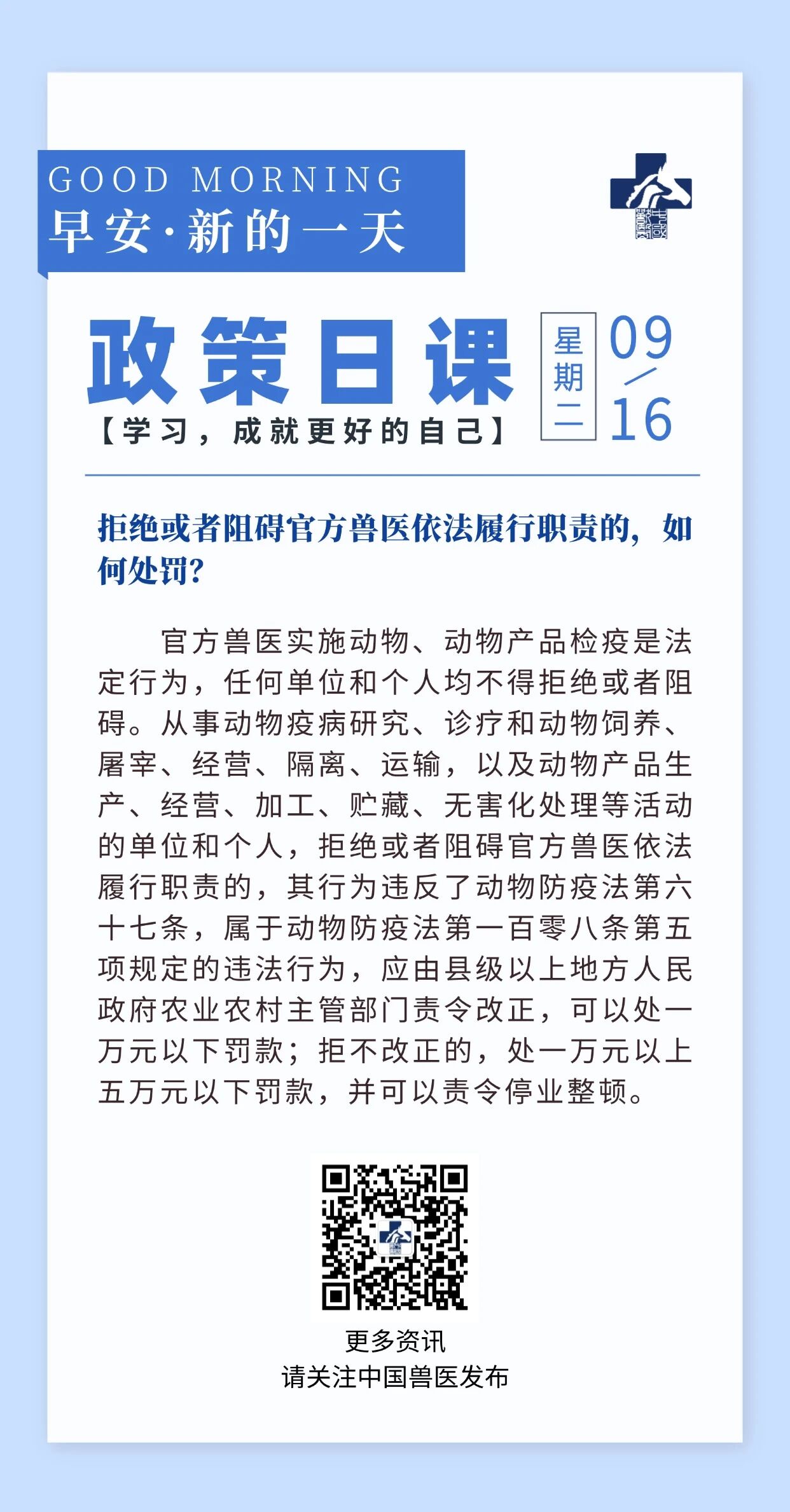 政策日课 | 拒绝或者阻碍官方兽医依法履行职责的,如何处罚?