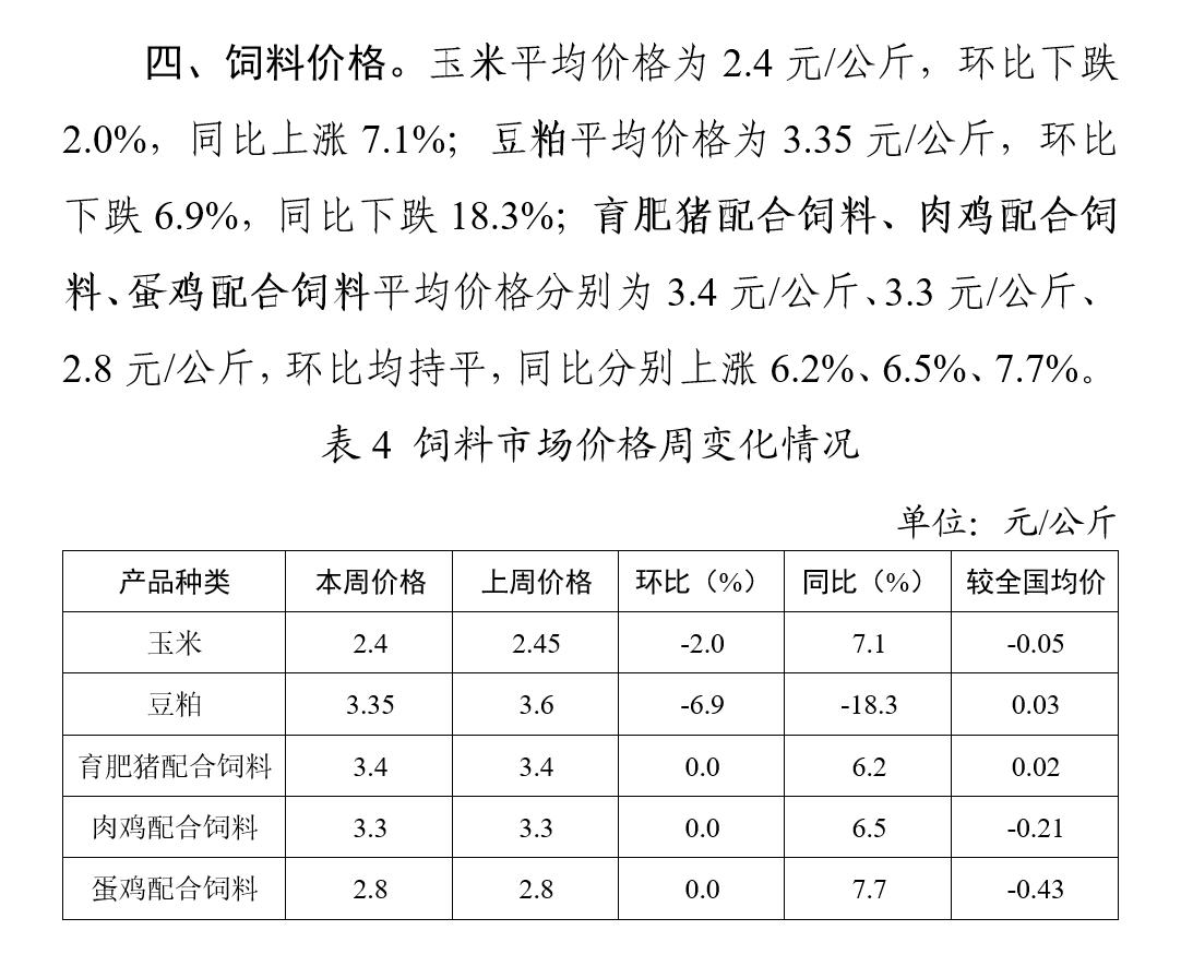 3月第1周我市主要畜产品和饲料市场价格小幅下跌