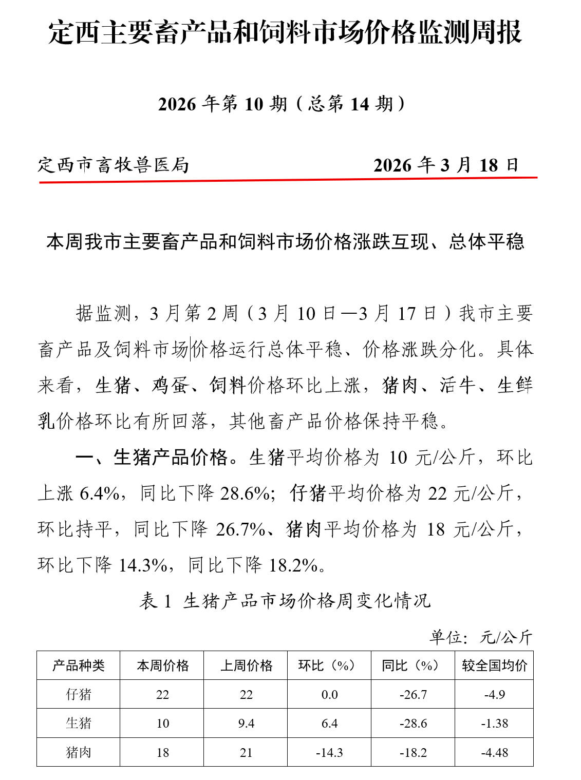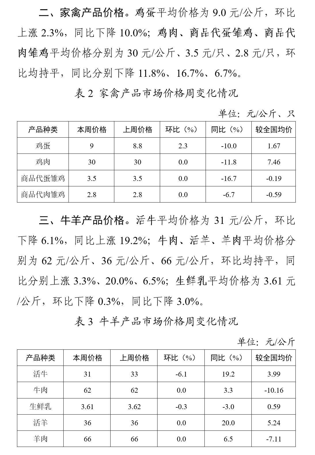 3月第2周我市主要畜产品和饲料市场价格涨跌互现、总体平稳